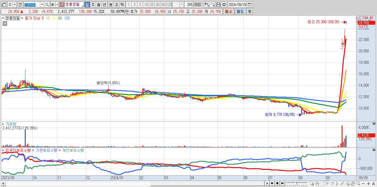 영풍정밀 24,950원 ▲ 9.67% (KOSDAQ, 036560)