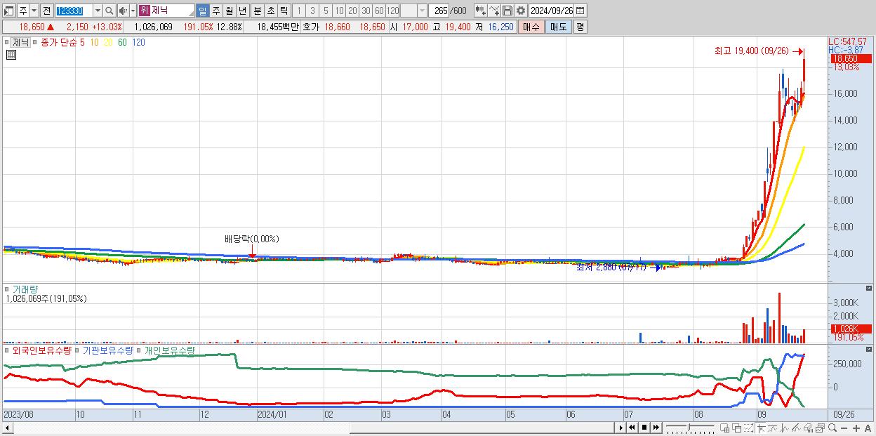 제닉 18,650원 ▲ 13.03% (KOSDAQ, 123330)