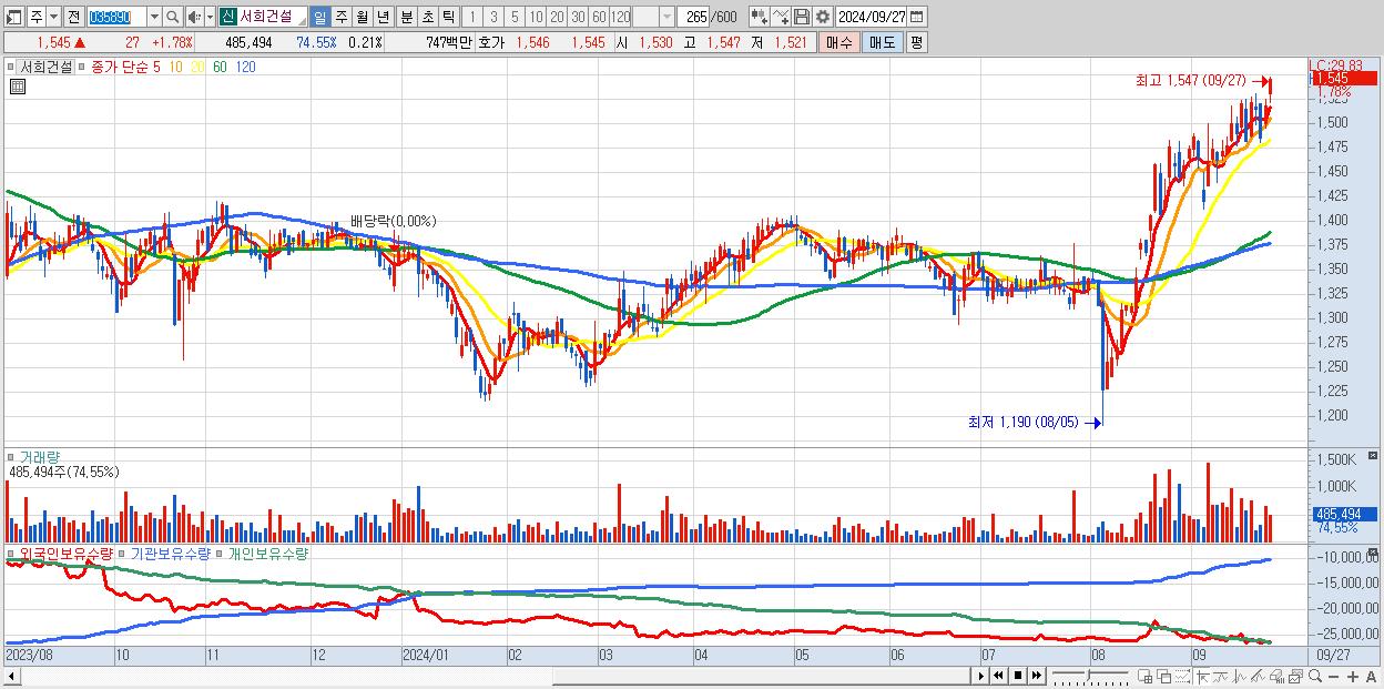 서희건설 1,545원 ▲ 1.78% (KOSDAQ, 035890)
