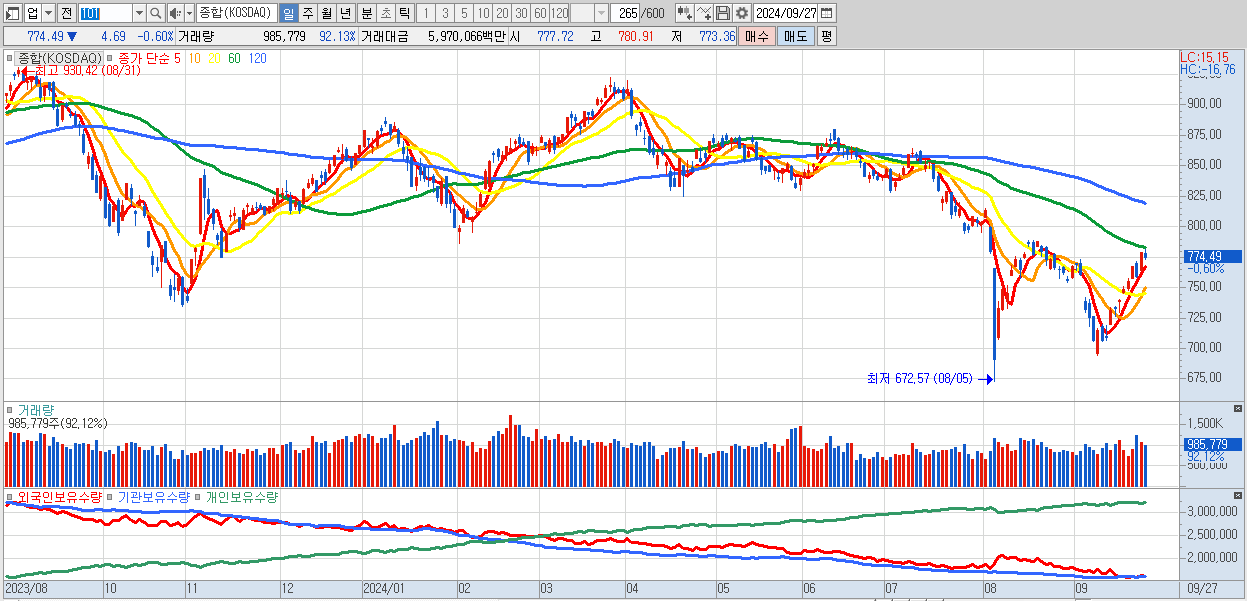 09/24 | 767.35 | ▲1.62% | -1,520억 | 961억 | 646억 | -87억 |