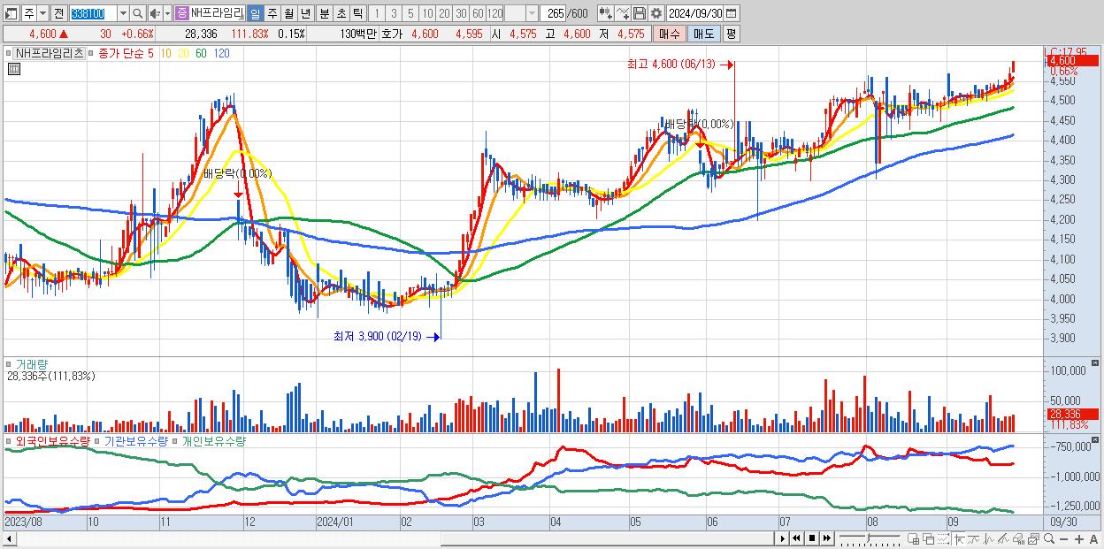 NH프라임리츠 4,600원 ▲ 0.66% (KOSPI, 338100)