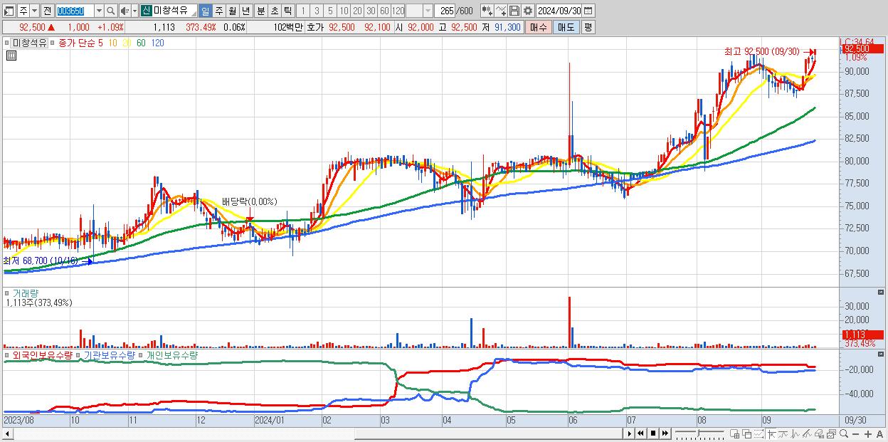 미창석유 92,500원 ▲ 1.09% (KOSPI, 003650)