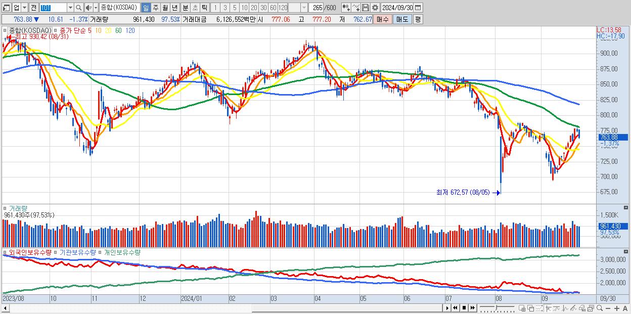 | 09/24 | 767.35 | ▲1.62% | -1,520억 | 961억 | 646억 | -87억 |