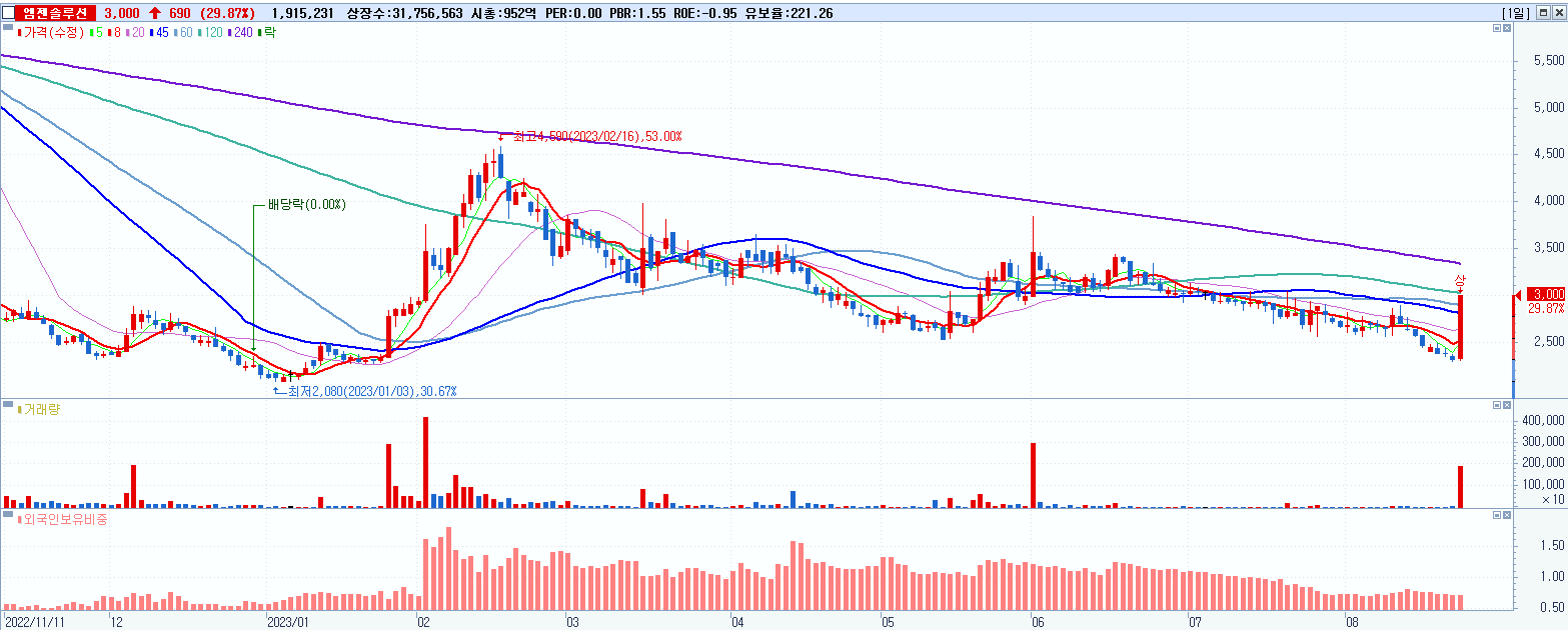 시총: 1,085억 거래량: 2,868,907 거래대금:245억