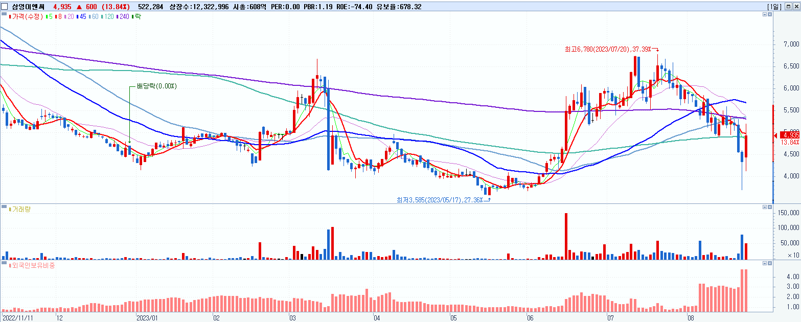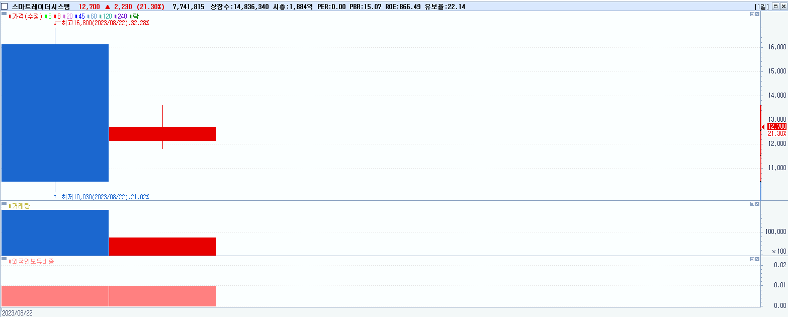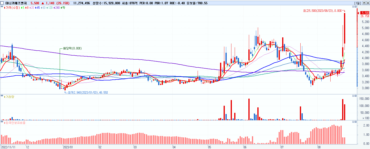 시총: 606억 거래량: 9,180,427 거래대금:116억