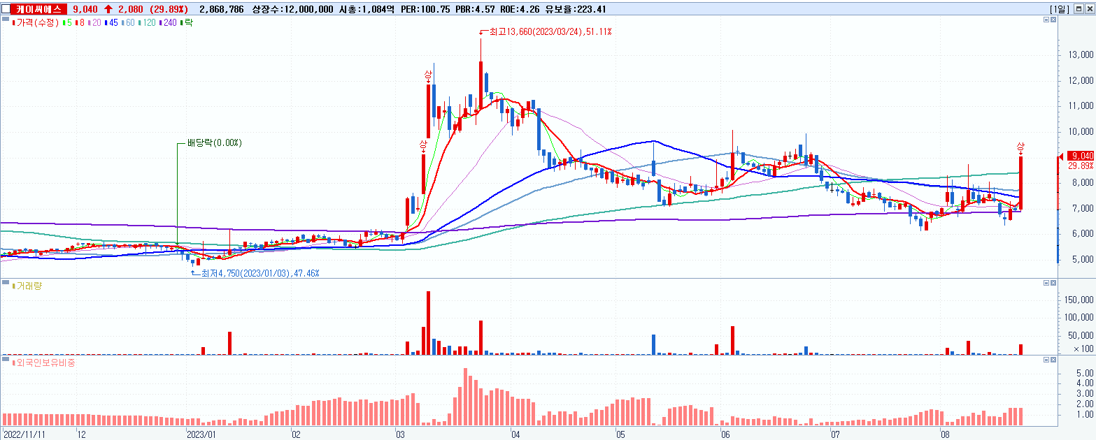 5.케이씨에스 9,040원 ▲ 29.89% (KOSDAQ, 115500)