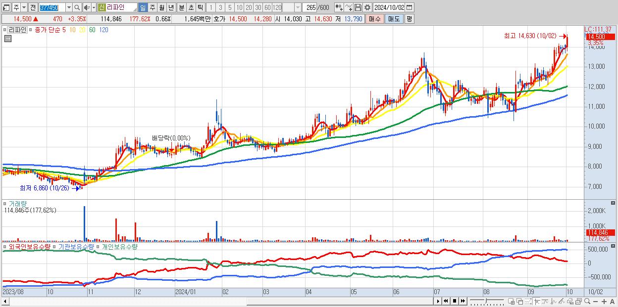 리파인 14,500원 ▲ 3.35% (KOSDAQ, 377450)