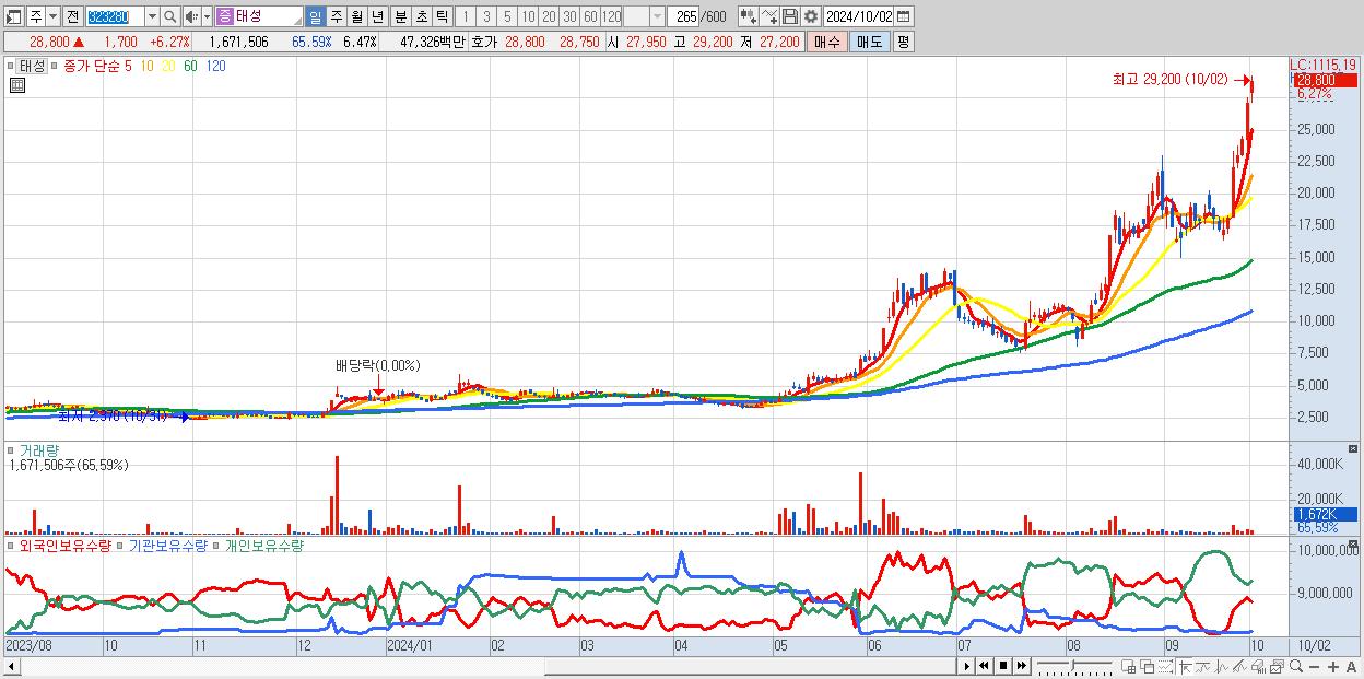 태성 28,800원 ▲ 6.27% (KOSDAQ, 323280)