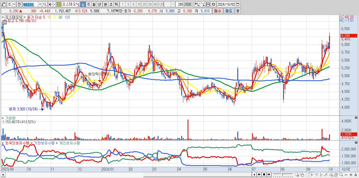 오스테오닉 6,280원 ▲ 6.44% (KOSDAQ, 226400)