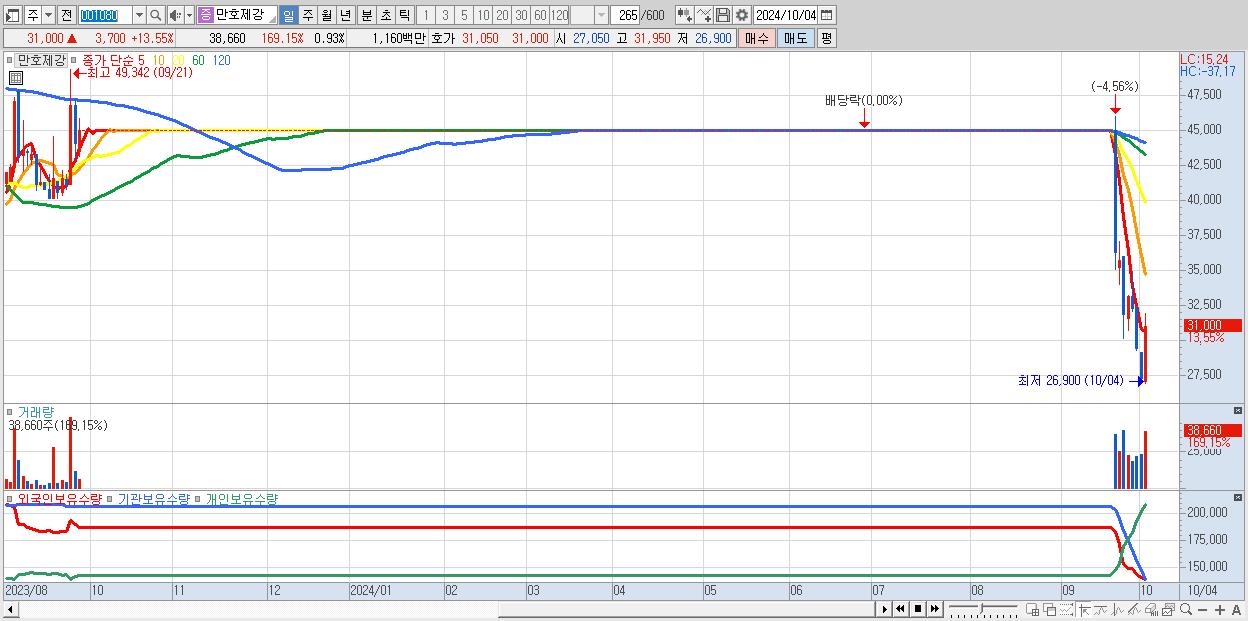 - 만호제강 (31,000원 ▲ 13.55% , 시총: 1,287억, 거래량: 38,660, 거래대금:12억)