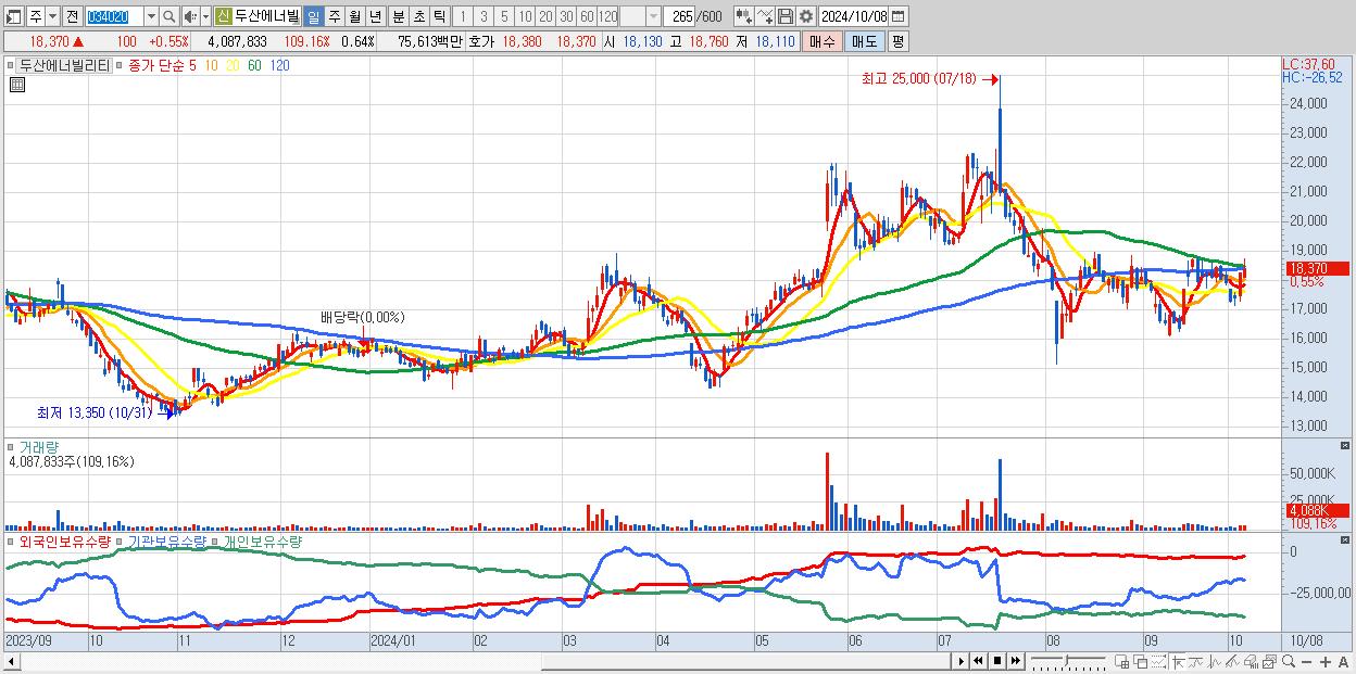 - 두산에너빌리티 (18,370원 ▲ 0.55% , 시총: 117,671억, 외국인 순매수 거래금:140억)