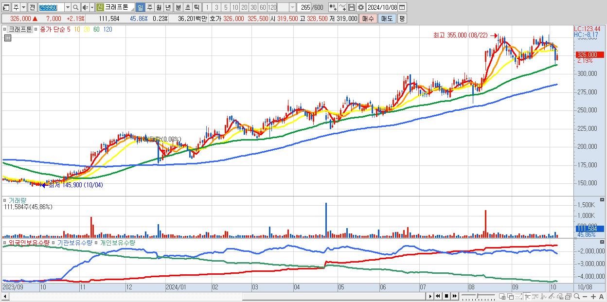 52주최고가(364,500원) 대비 0% (3일 연속 갱신중)