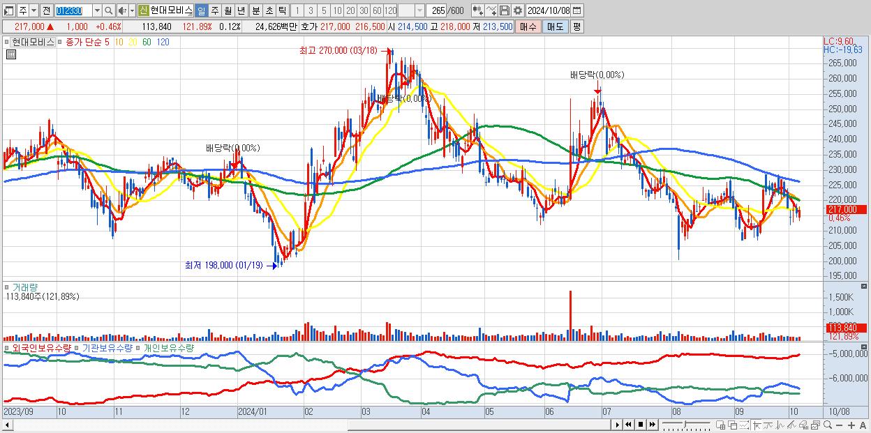 - 현대모비스 (217,000원 ▲ 0.46% , 시총: 201,799억, 외국인 순매수 거래금:73억)