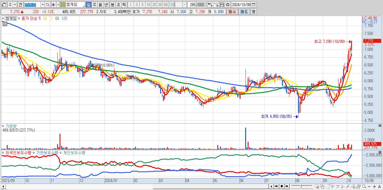 엠게임 7,270원 ▲ 3.12% (KOSDAQ, 058630)