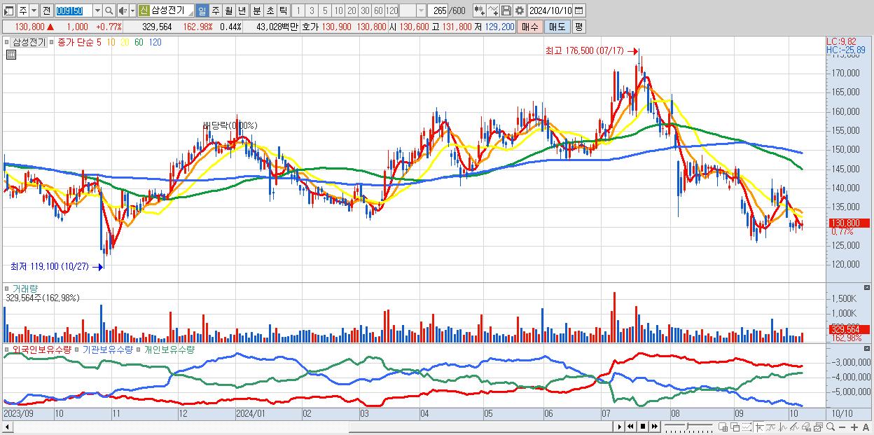 시총: 1,359,180억 거래량: 6,325,045 거래대금:11,760억 업종:전기전자