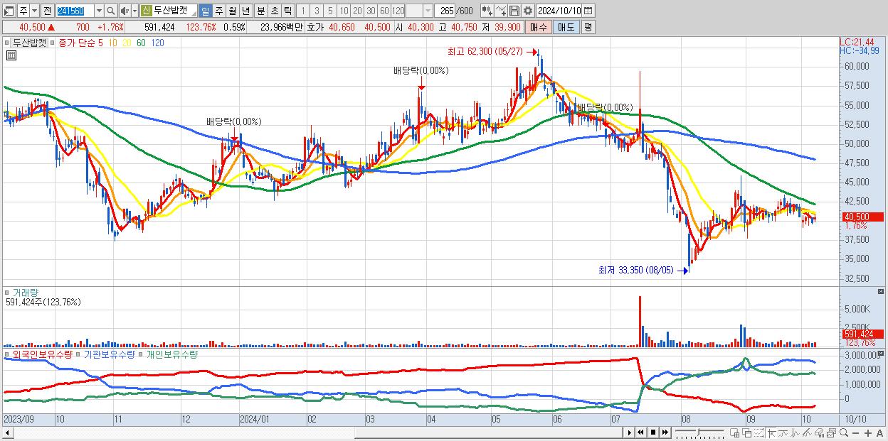 - 두산밥캣 (40,500원 ▲ 1.76% , 시총: 40,601억, 외국인 순매수 거래금:75억)