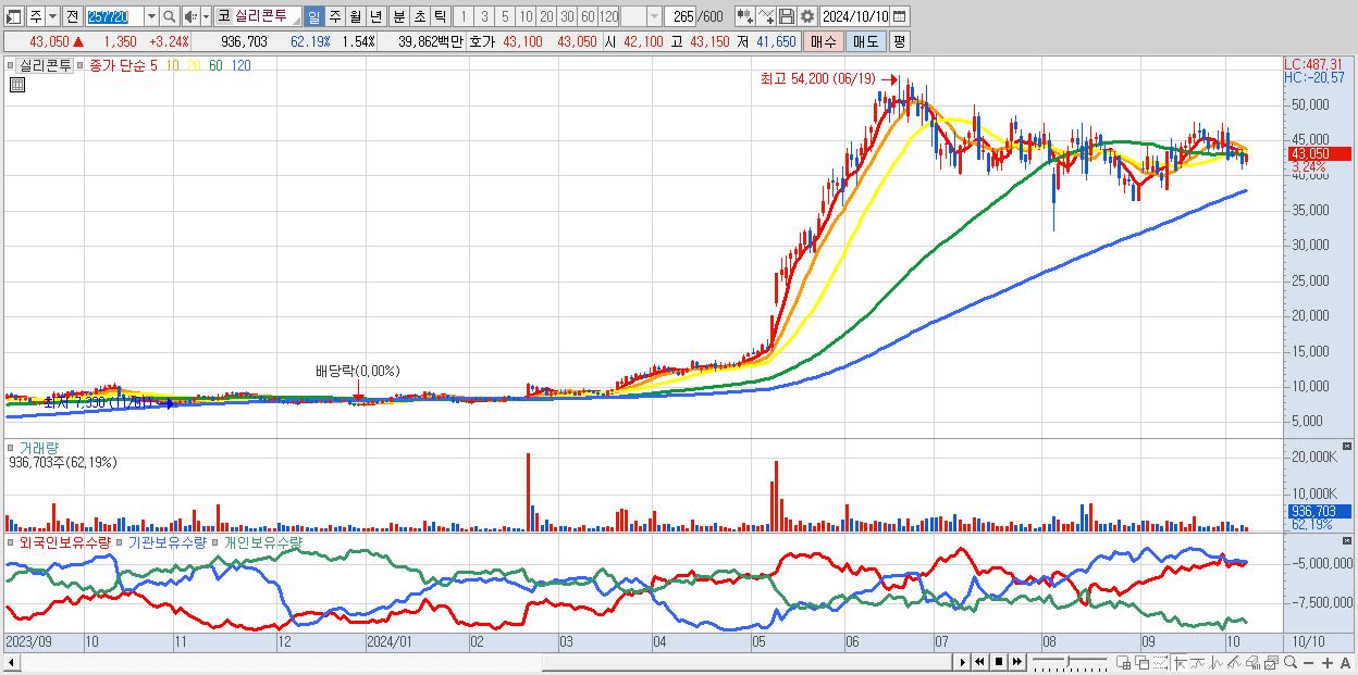 - 실리콘투 (43,050원 ▲ 3.24% , 시총: 26,206억, 외국인 순매수 거래금:79억)