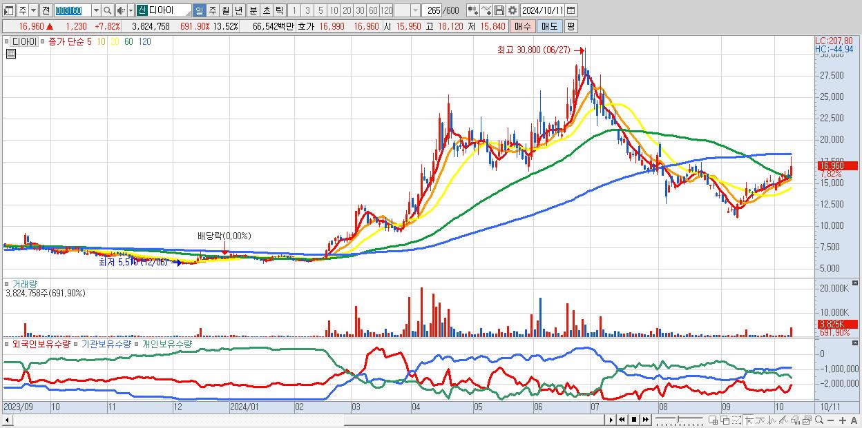 - 디아이 (16,960원 ▲ 7.82% , 시총: 4,800억, 외국인 순매수 거래금:36억)
