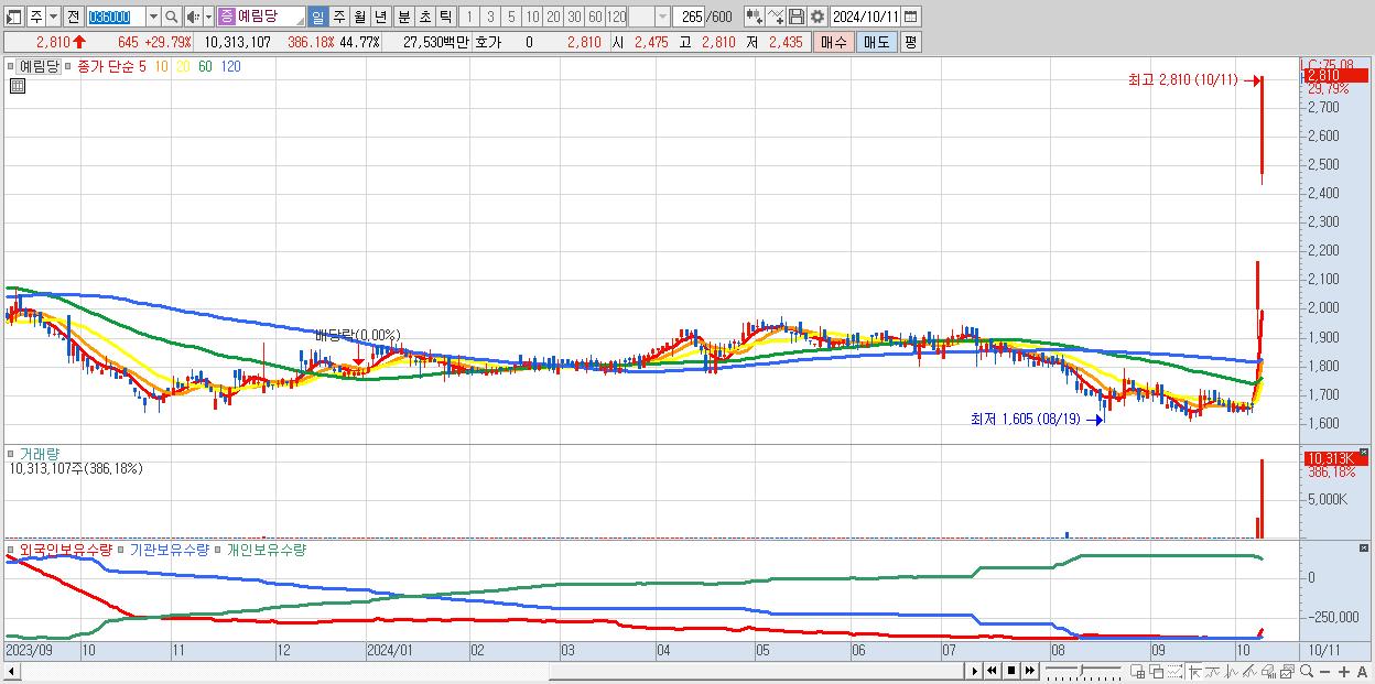 예림당 2,810원 ▲ 29.79% (KOSDAQ, 036000)