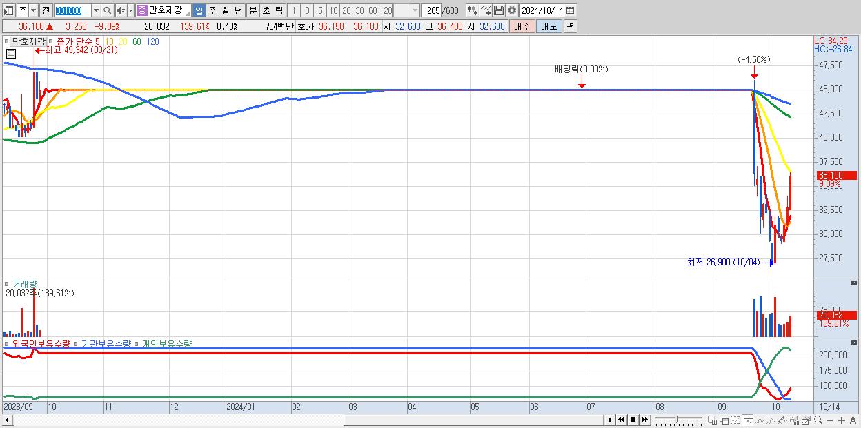 29.만호제강 36,100원 ▲ 9.89% (KOSPI, 001080)