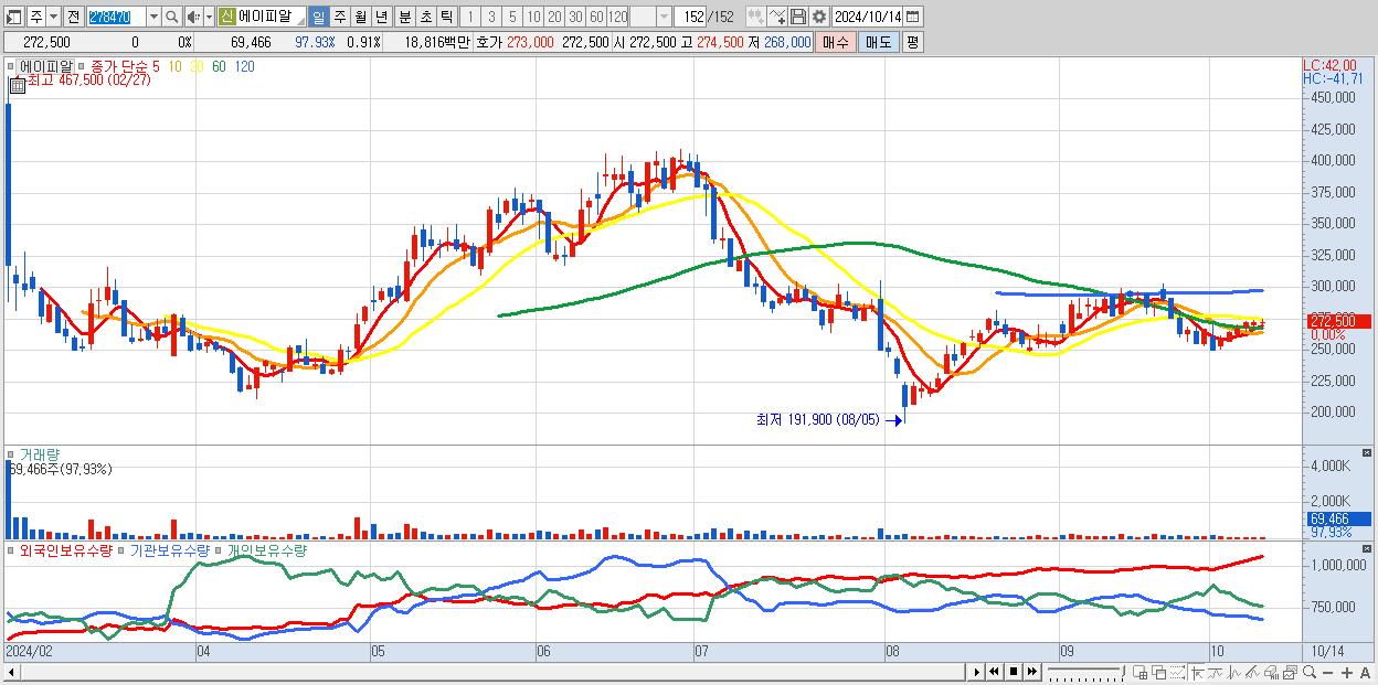 - 에이피알 (272,500원 0% , 시총: 20,765억, 외국인 순매수 거래금:65억)