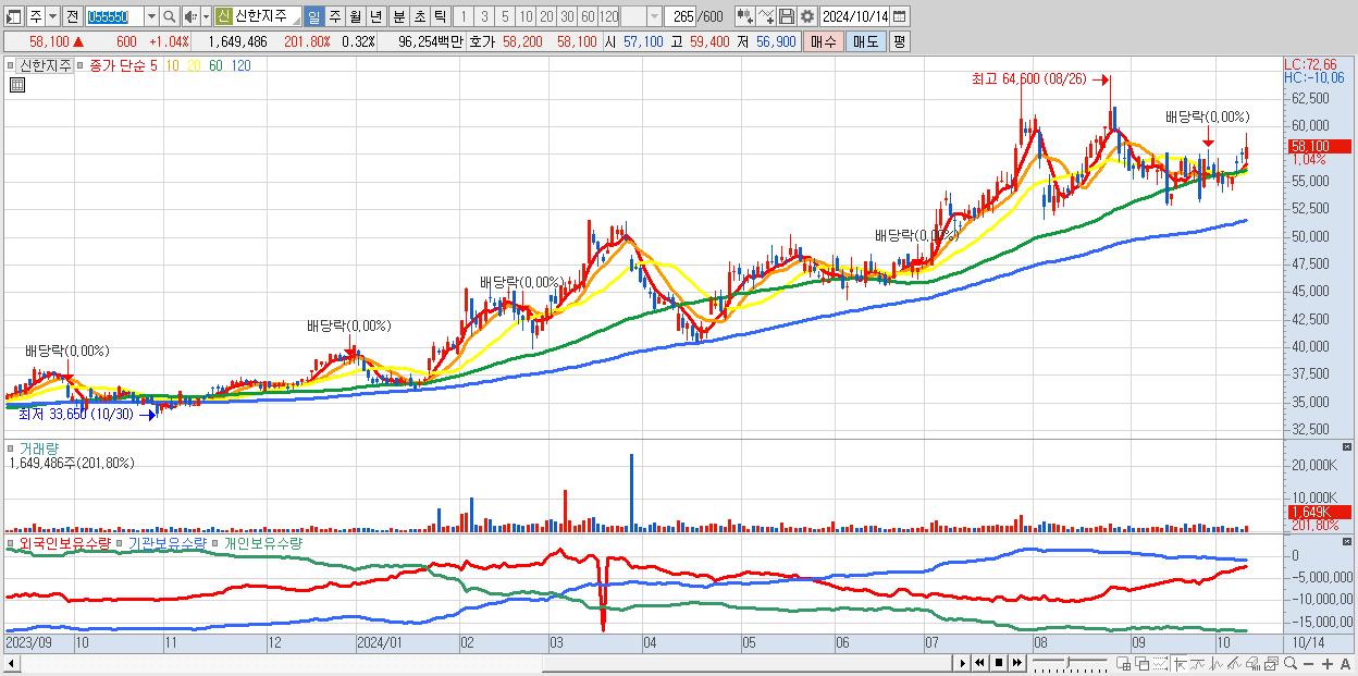- 신한지주 (58,100원 ▲ 1.04% , 시총: 295,957억, 외국인 순매수 거래금:129억)