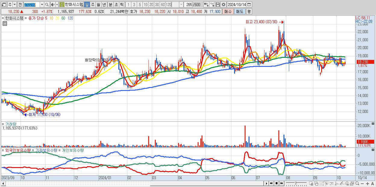 - 한화시스템 (18,230원 ▲ 1.67% , 시총: 34,440억, 외국인 순매수 거래금:57억)