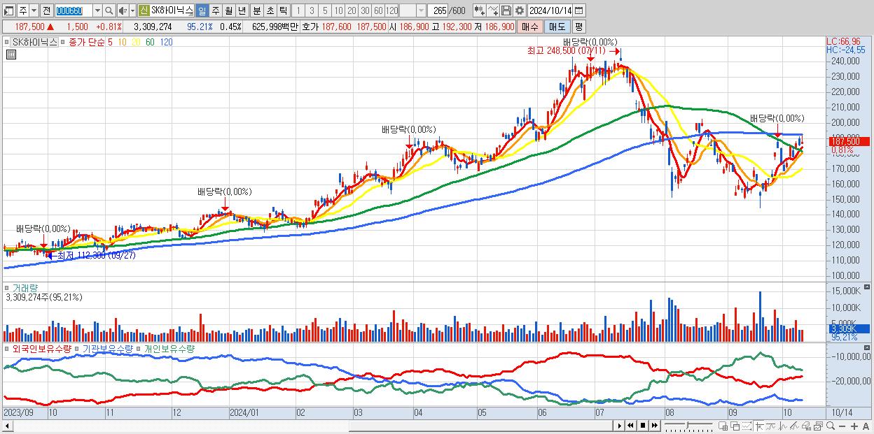 - SK하이닉스 (187,500원 ▲ 0.81% , 시총: 1,365,004억, 외국인 순매수 거래금:429억)