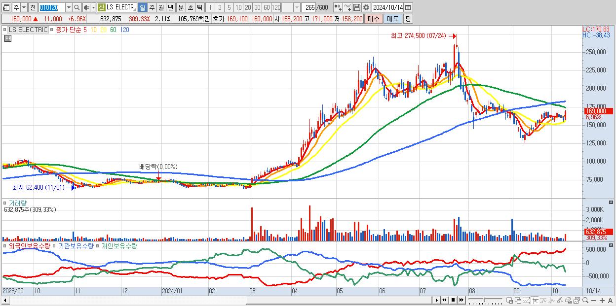 - LS ELECTRIC (169,000원 ▲ 6.96% , 시총: 50,700억, 외국인 순매수 거래금:354억)
