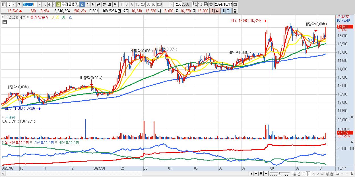 2.우리금융지주 16,540원 ▲ 3.96% (KOSPI, 316140)