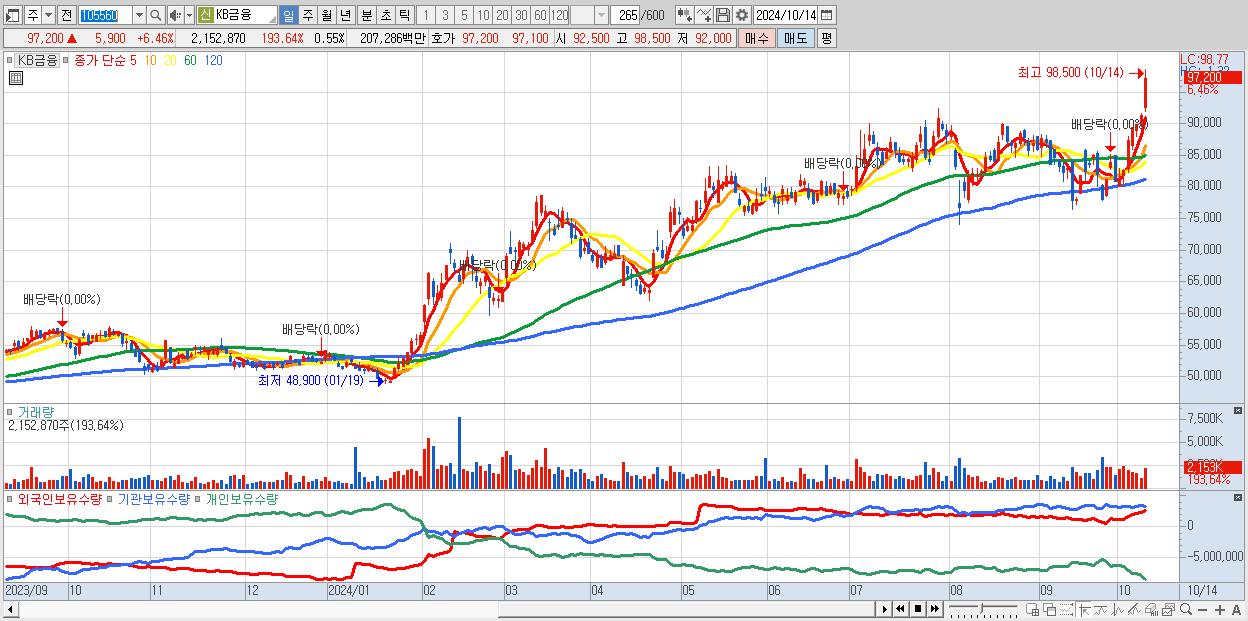 1.KB금융 97,200원 ▲ 6.46% (KOSPI, 105560)