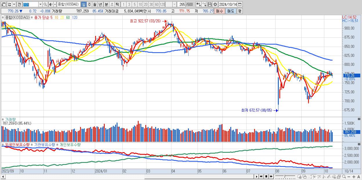 | 09/24 | 767.35 | ▲1.62% | -1,520억 | 961억 | 646억 | -87억 |
