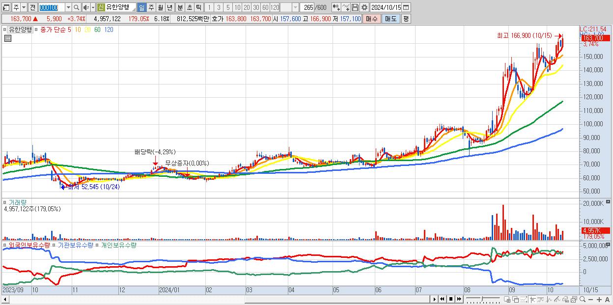 2.유한양행 163,700원 ▲ 3.74% (KOSPI, 000100)