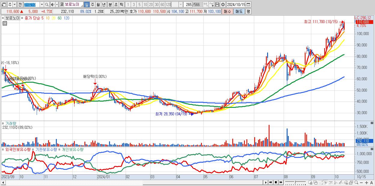 - 보로노이 (110,600원 ▲ 4.73% , 시총: 20,012억, 외국인 순매수 거래금:39억)