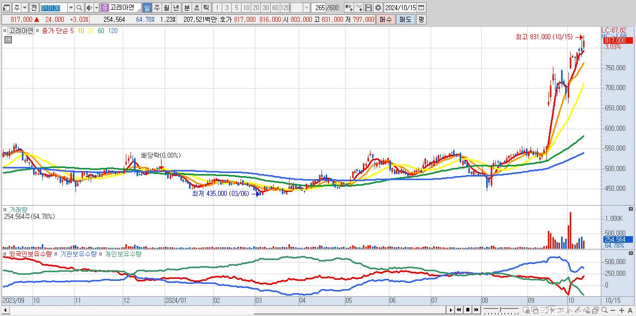 - 고려아연 (817,000원 ▲ 3.03% , 시총: 169,146억, 외국인 순매수 거래금:380억)