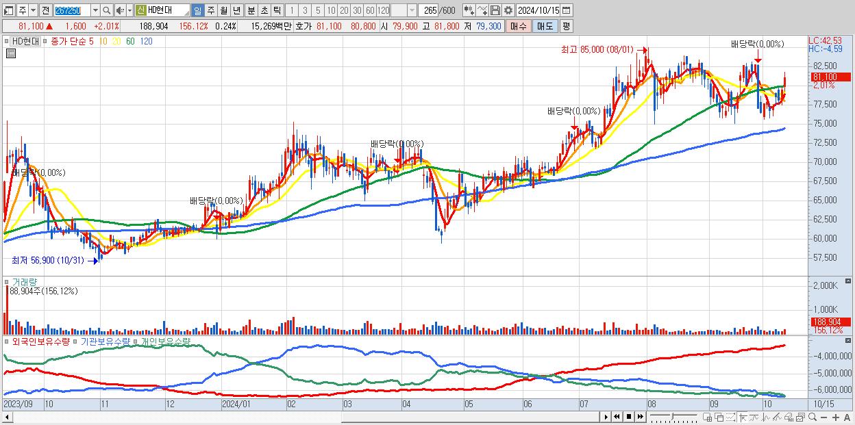 - HD현대 (81,100원 ▲ 2.01% , 시총: 64,063억, 외국인 순매수 거래금:52억)