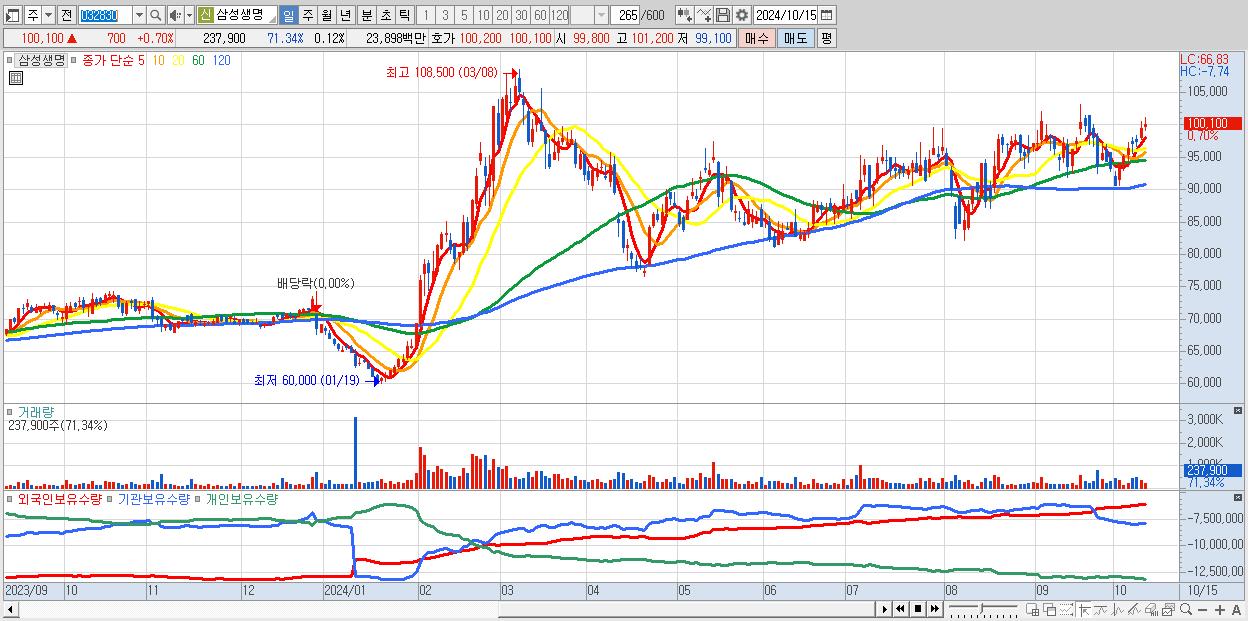 - 삼성생명 (100,100원 ▲ 0.7% , 시총: 200,200억, 외국인 순매수 거래금:81억)
