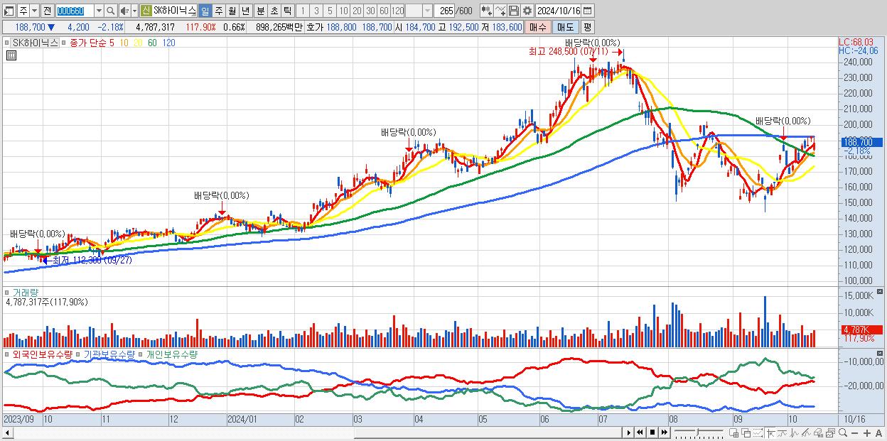 2.SK하이닉스 188,700원 ▼ -2.18% (KOSPI, 000660)