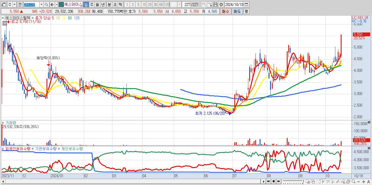 - 에스와이스틸텍 (5,550원 ▲ 20.52% , 시총: 1,699억, 거래량: 29,532,336, 거래대금:1,508억)
