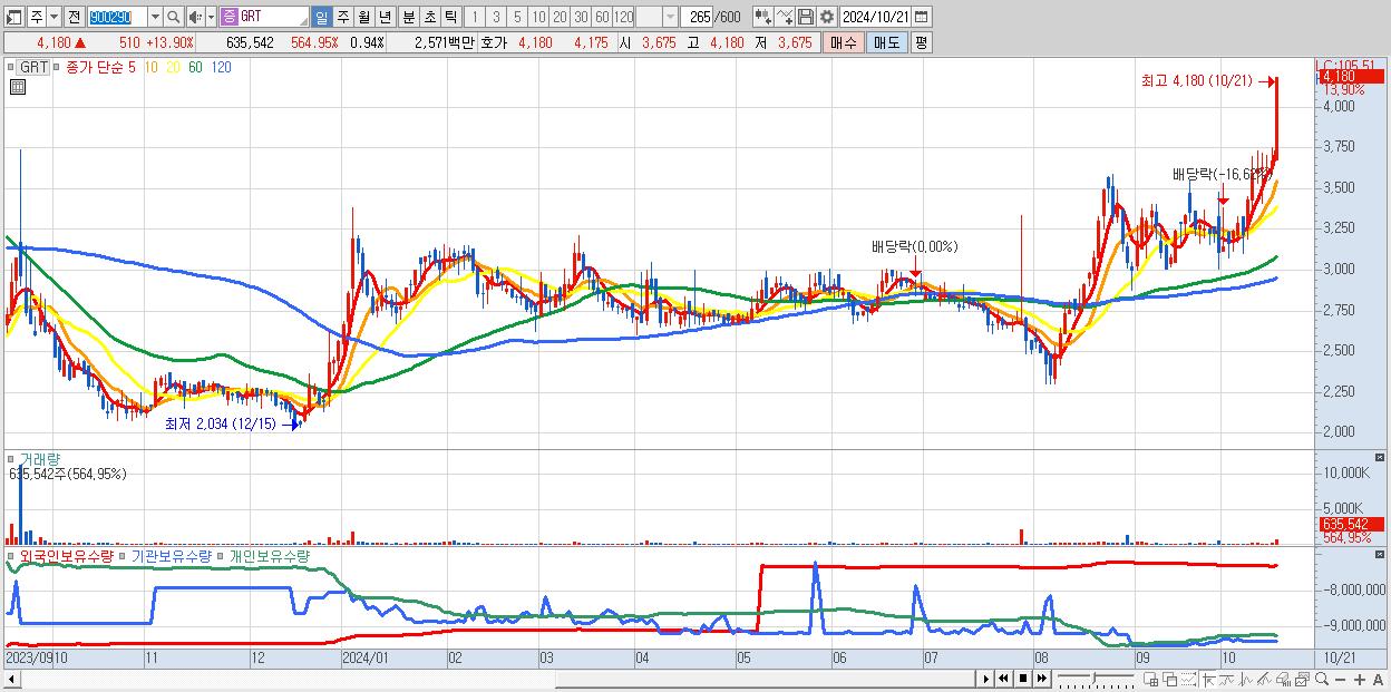 GRT 4,180원 ▲ 13.9% (KOSDAQ, 900290)
