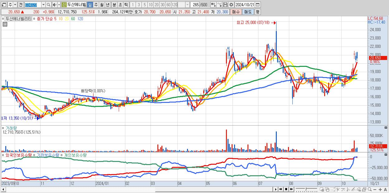 - 두산에너빌리티 (20,650원 ▲ 0.98% , 시총: 132,276억, 거래량: 12,710,750, 거래대금:2,641억)