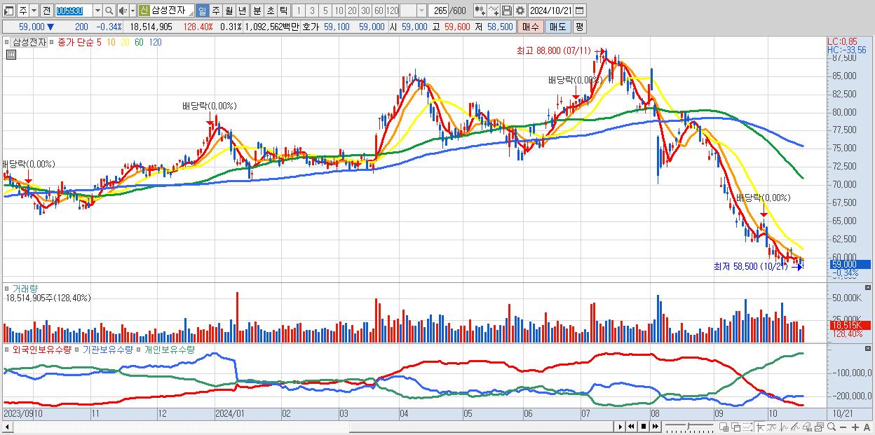 1.삼성전자 59,000원 ▼ -0.34% (KOSPI, 005930)