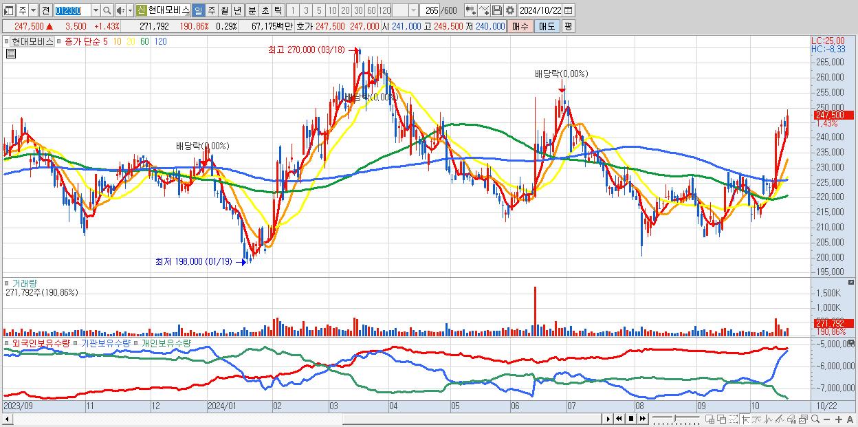 - 현대모비스 (247,500원 ▲ 1.43% , 시총: 230,163억, 외국인 순매수 거래금:68억)