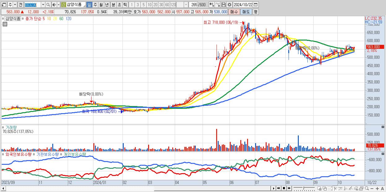- 삼양식품 (563,000원 ▲ 2.18% , 시총: 42,411억, 외국인 순매수 거래금:42억)