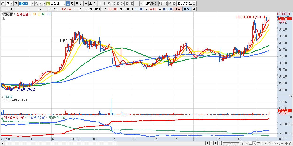 2.한진칼 93,100원 0% (KOSPI, 180640)