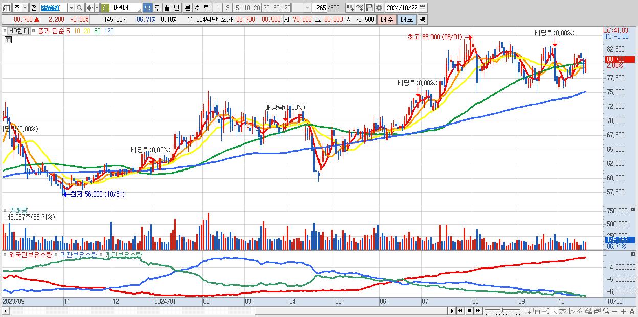 - HD현대 (80,700원 ▲ 2.8% , 시총: 63,747억, 외국인 순매수 거래금:49억)