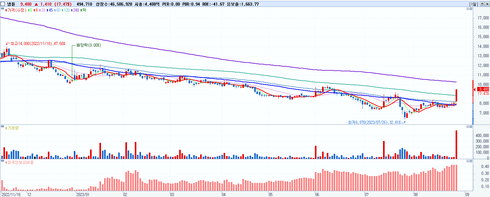 시총: 1,688억 거래량: 22,172,104 거래대금:1,179억