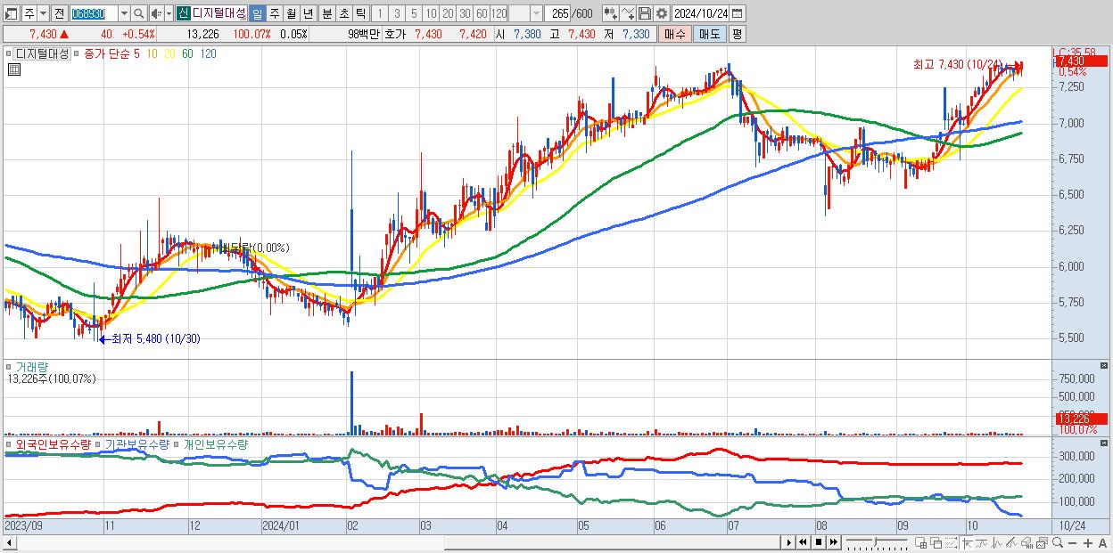 디지털대성 7,430원 ▲ 0.54% (KOSDAQ, 068930)