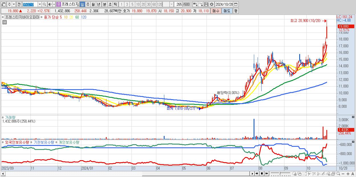 프레스티지바이오파마 19,880원 ▲ 12.57% (KOSPI, 950210)