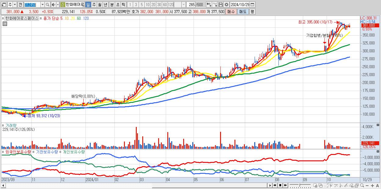 - 한화에어로스페이스 (381,000원 ▲ 0.93% , 시총: 173,664억, 외국인 순매수 거래금:89억)